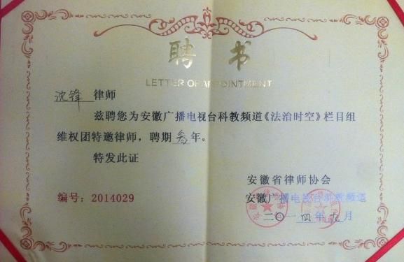 執(zhí)業(yè)經(jīng)歷:沈鋒律師現(xiàn)在為合肥市公司法委員會(huì)委員,安徽大森律師事務(wù)所副主任,訴訟業(yè)務(wù)部主任, 2006從事律師工作至今,期間主要以公司、企業(yè)用工風(fēng)險(xiǎn)控制及勞動(dòng)爭(zhēng)議方案為主,在這些領(lǐng)域取得重要的成果。沈鋒律師執(zhí)業(yè)以來(lái),先后擔(dān)任中國(guó)人民財(cái)產(chǎn)保險(xiǎn)股份有限公司、安徽新騰圖書有限公司、安徽金農(nóng)生物科技有限公司等多家公司企業(yè)的法律顧問(wèn),并同時(shí)兼任合肥市“市長(zhǎng)熱線”接線律師,合肥電視臺(tái)“廬州和事佬”隨行律師,安徽農(nóng)村廣播“法制時(shí)空”欄目做客律師,安徽商報(bào)諸多欄目點(diǎn)評(píng)律師。