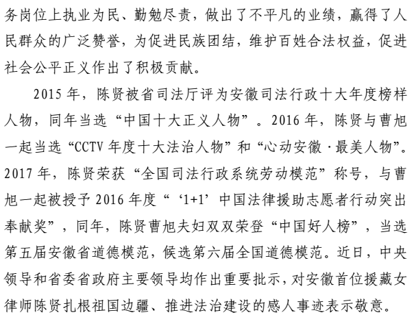 現(xiàn)將《安徽省律師協(xié)會關(guān)于在全省律師隊伍中開展向陳賢律師學(xué)習(xí)活動的通知》轉(zhuǎn)發(fā)給你們,希望你們與學(xué)習(xí)貫徹即將召開的十九大精神結(jié)合起來,與學(xué)習(xí)習(xí)近平總書記系列重要講話和治國理政新理念新思想新戰(zhàn)略結(jié)合起來,與貫徹落實司法部關(guān)于加強律師隊伍建設(shè)的要求結(jié)合起來,與深入推進“兩學(xué)一做”學(xué)習(xí)教育常態(tài)化制度化結(jié)合起來,迅速掀起向陳賢律師學(xué)習(xí)的熱潮。同時,要充分發(fā)揮先進典型的示范引領(lǐng)作用,努力打造一支政治堅定、精通法律、維護正義、恪守誠信的律師隊伍,為建設(shè)“大湖名城、創(chuàng)新高地”,打造“長三角世界級城市群副中心”提供堅實的法治保障,創(chuàng)造良好的法治環(huán)境。