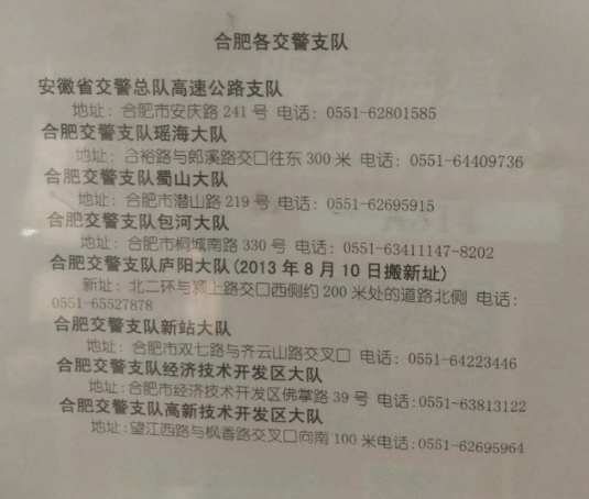 地址:合肥市包河區(qū)馬鞍山路168號合肥市公安局交警支隊。