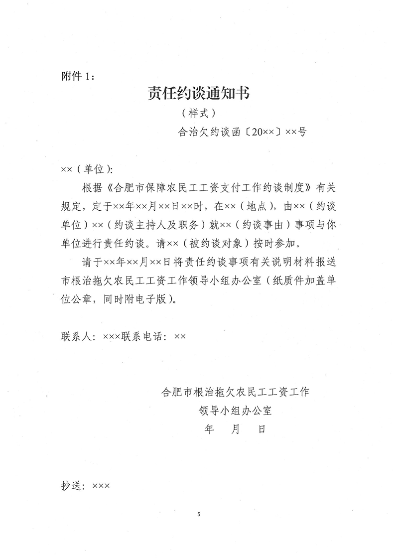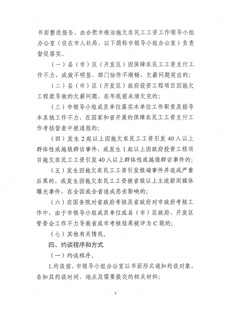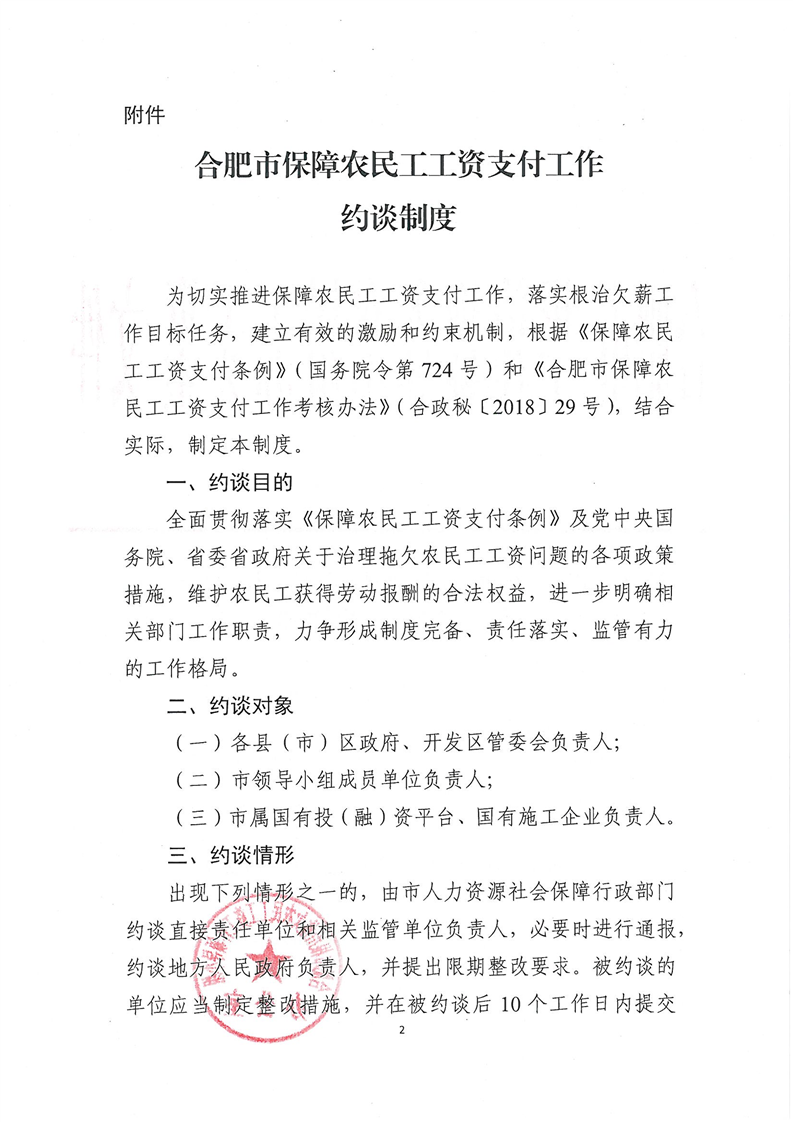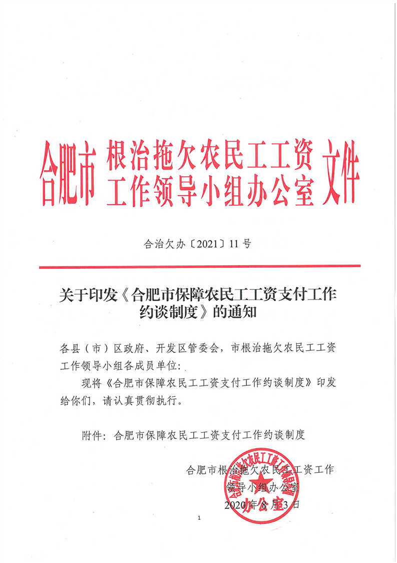 關于印發(fā)《合肥市保障農(nóng)民工工資支付工作約談制度》的通知 合治欠辦〔2021〕11號