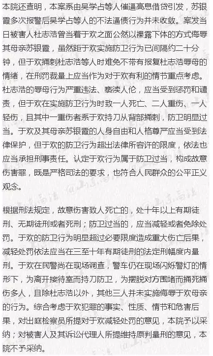 于歡故意傷害罪二審改判五年(附判決書)
